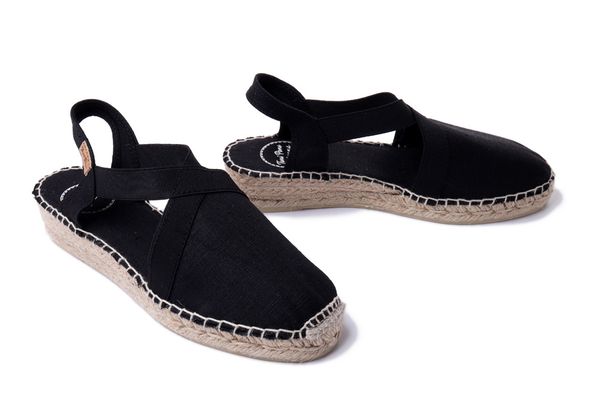 Sandały/espadryle damskie. Elastyczna cholewka. Miękka wkładka. Zakryte noski. Wygodny, stabilny koturn.