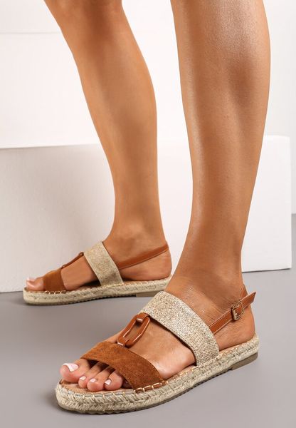 Brązowe Sandały na Plecionej Podeszwie ze Sprzączką i Paseczkami Daellisa