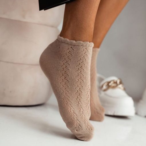 Beżowe ażurowe stopki damskie 779