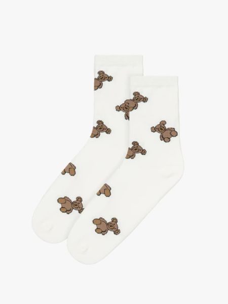 Białe skarpetki za kostkę damskie z misie