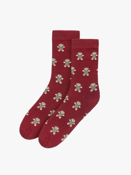 Bordowe bawełniane skarpety damskie z motywem świątecznym