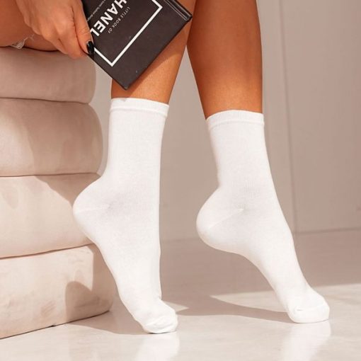 Białe bawełniane GŁADKIE skarpetki damskie 956