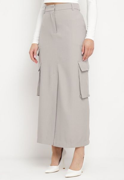 Szara Spódnica w Stylu Utility z Kieszeniami i Rozcięciem na Przodzie Temari