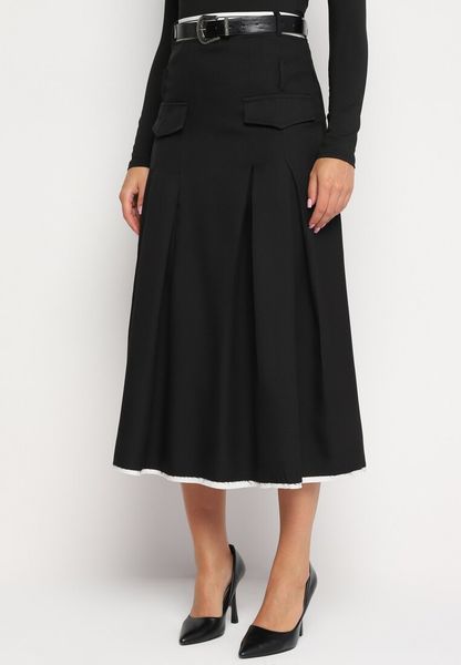 Czarna Plisowana Rozkloszowana Spódnica z Imitacją Kieszeni Paskiem i Gumką w Talii Evisthai