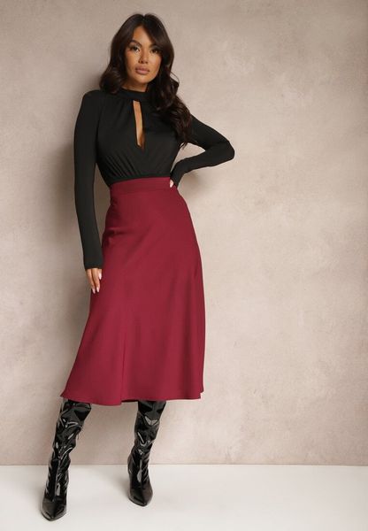 Bordowa Casualowa Rozkloszowana Spódnica Dorilena