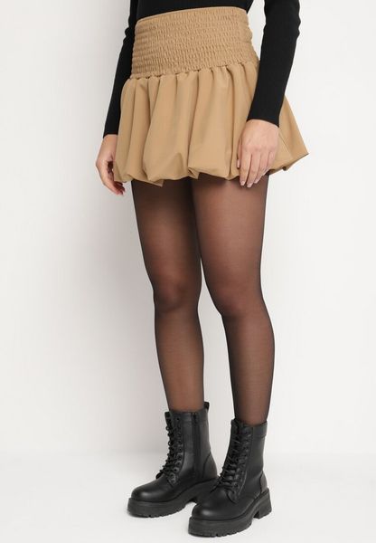 Ciemnobeżowa Rozkloszowana Spódnica Bufiasta z Elastyczną Gumką w Pasie Hetilda