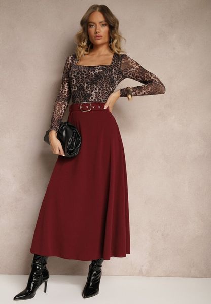 Bordowa Spódnica o Rozkloszowanym Kroju Melobia