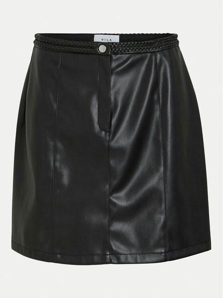 Vila Spódnica z imitacji skóry Pen 14100268 Czarny Regular Fit