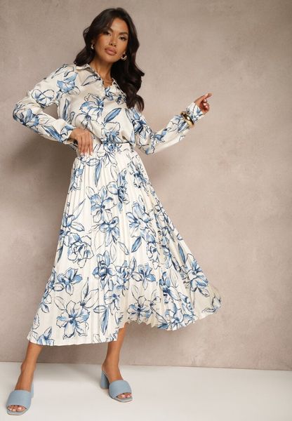 Biało-Niebieska Plisowana Spódnica z Wiskozą w Kwiatowy Print Rivavina