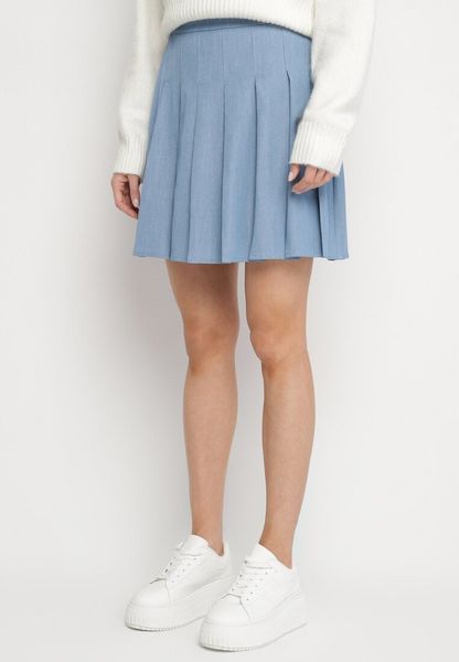 Niebieska Bawełniana Spódnica o Rozkloszowanym Kroju z Plisami Delanielis