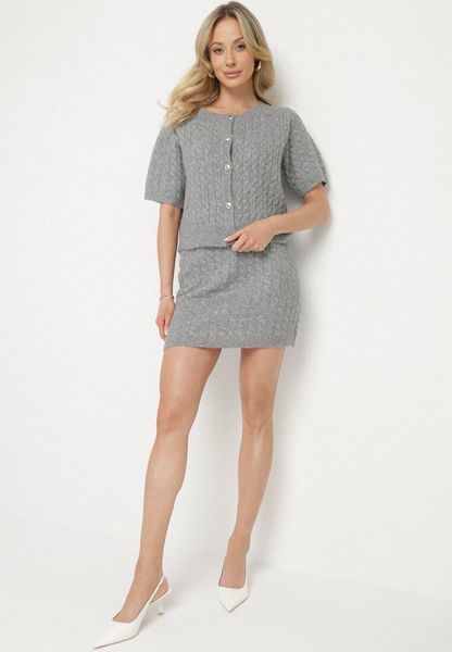 Szara Sweterkowa Spódnica z Wełną i Wysokim Stanem Milzekia