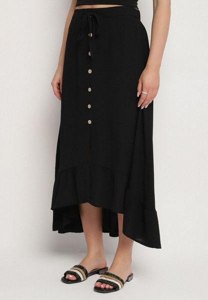 Czarna Asymetryczna Spódnica z Falbanami i Ozdobnymi Guzikami Marolana