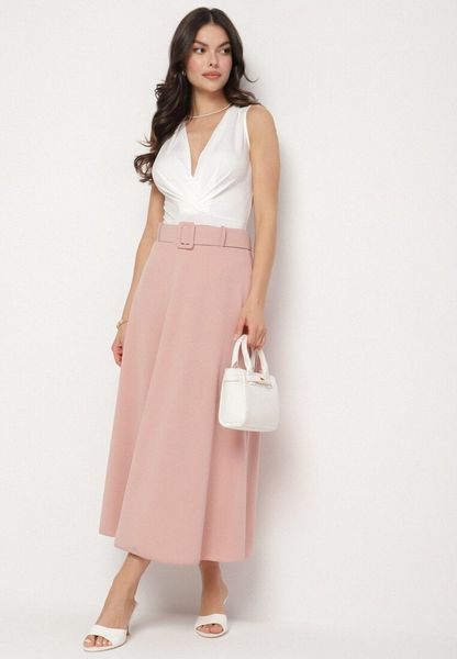 Różowa Gładka Spódnica Maxi z Gumką w Pasie i Klamrą Orirsa
