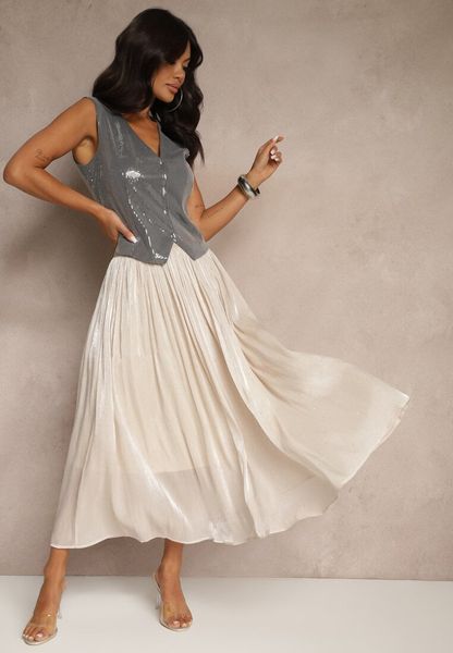 Beżowa Spódnica o Rozkloszowanym Kroju z Ozdobnymi Cyrkoniami Folaressa
