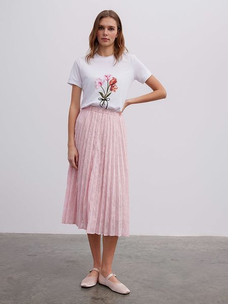 – wysokość pasa: high waist- pas / ściągacz: elastyczny- krój: luźny- look: jednokolorowy, plisyUwaga: Przy wyborze właściwego wariantu zaleca się korzystanie z tabeli rozmiarów.