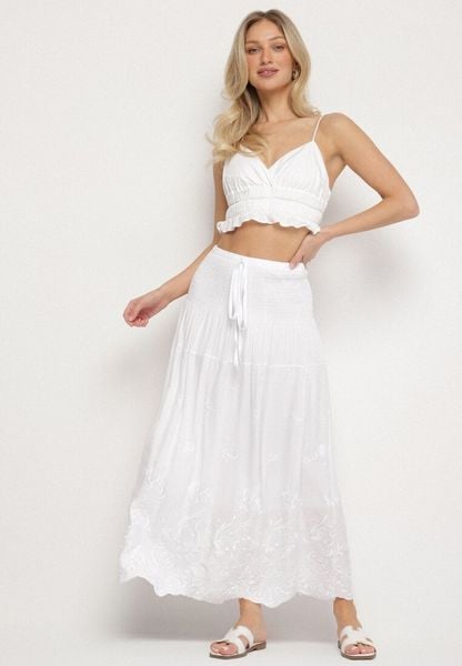Biała Spódnica Rozkloszowana z Bawełny z Haftowanymi Kwiatami Divilene