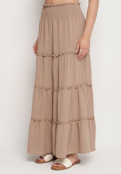 Beżowa Spódnica o Rozkloszowanym Kroju z Falbankami i Gumką w Talii Dovinala