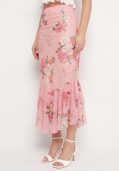 Różowa Spódnica o Dopasowanym Kroju Zdobiona Falbanką Efririsse
