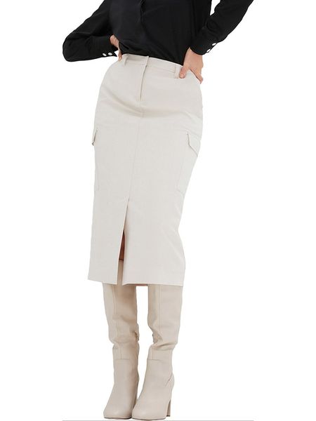– z poliestru pochodzącego z recyklingu- wysokość pasa: high waist- zapięcie: haczyk i suwak- szlufki na pasek: tak- kieszenie: cargo- dolny brzeg: z rozcięciem- krój: wąski- look: jednokolorowy