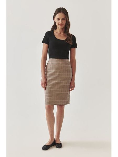– wysokość pasa: high waist- zapięcie: suwak z tyłu- dolny brzeg: z rozcięciem- krój: prosty- wzór: kratka