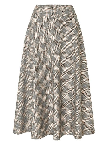 – zapięcie: suwak- szlufki na pasek: tak- zdejmowany pasek: tkanina- krój: rozkloszowany- wzór: kratka