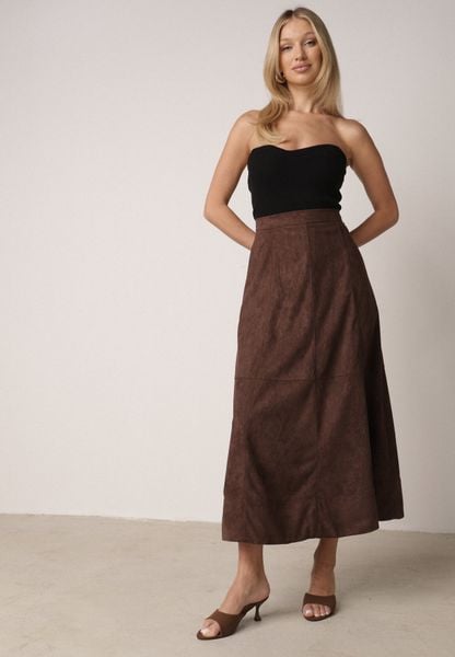 Brązowa Rozkloszowana Spódnica z Imitacji Zamszu Basara