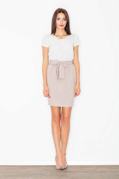 Beżowa Spódnica Krótka Ołówkowa z Wiązaną Szarfą