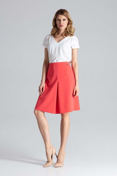 Koralowa Midi Spódnica w Kształcie Litery A z Kontrafałdą