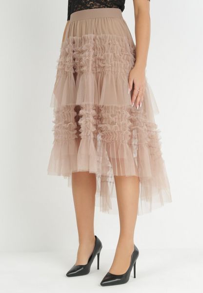 Ciemnobeżowa Rozkloszowana Spódnica z Falbankami Warda