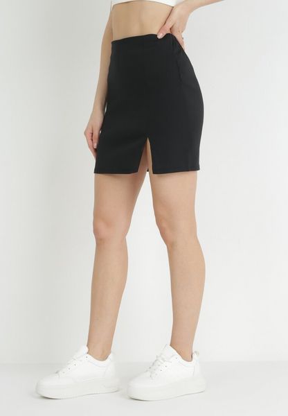 Czarna Spódnica Mini z Rozcięciem na Dole i Gumką w Talii Aiguillon