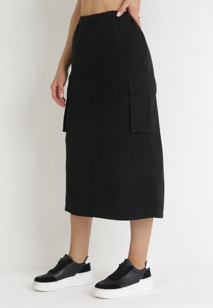 Czarna Bawełniana Spódnica Cargo z Gumkami w Pasie Derania