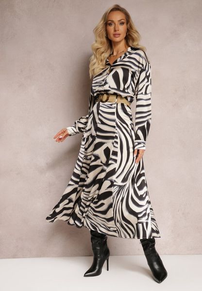 Spódnica maxi udekorowana animal printem przypominającym paski tygrysa. Fason z podszewką, zapinana na suwak, posiada pleciony pasek z okrągłą klamrą w komplecie.