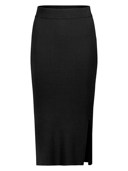– wysokość pasa: high waist- pas / ściągacz: elastyczny- dolny brzeg: z rozcięciem- krój: wąski- look: jednokolorowy, prążkowany
