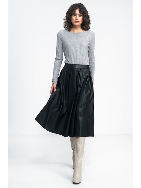 – zapięcie: suwak- krój: rozkloszowany- look: jednokolorowy, imitacja skóry