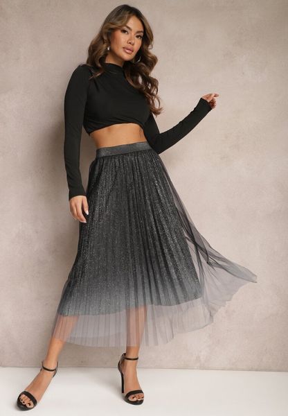 Czarna Spódnica z Siateczki Ozdobionej Brokatem z Gumką w Talii Henizia