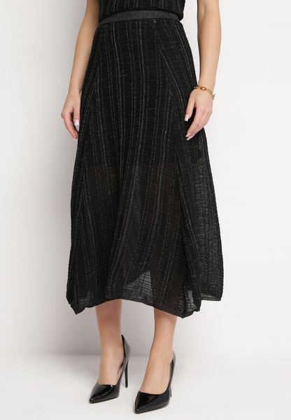 Czarna Spódnica z Ozdobnym Tłoczeniem Błyszczącą Nicią i Gumką w Pasie Pirlena