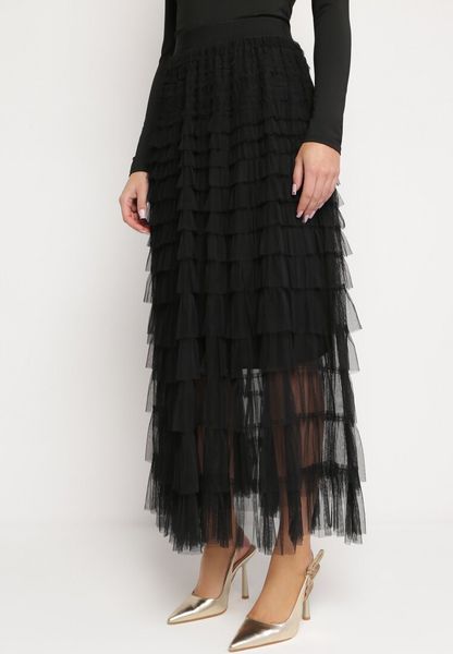 Czarna Spódnica Maxi z Bawełny Ozdobiona Falbankami Smotia
