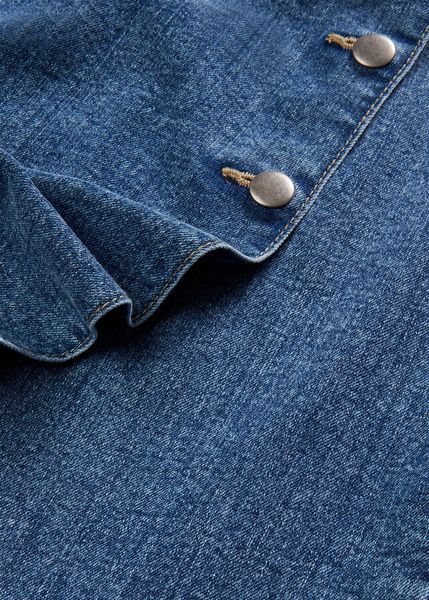 Modna spódnica dżinsowa z założeniem kopertowym i guzikami.