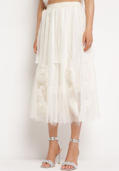 Rozkloszowana spódnica Ninafri z transparentnej tkaniny ozdobiona falbanką to wyjątkowy element garderoby, który dodaje delikatności i lekkości każdej stylizacji. Model posiada podszewkę.