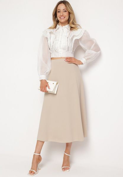 Jasnobeżowa Klasyczna Spódnica Midi Rozkloszowana Verettia