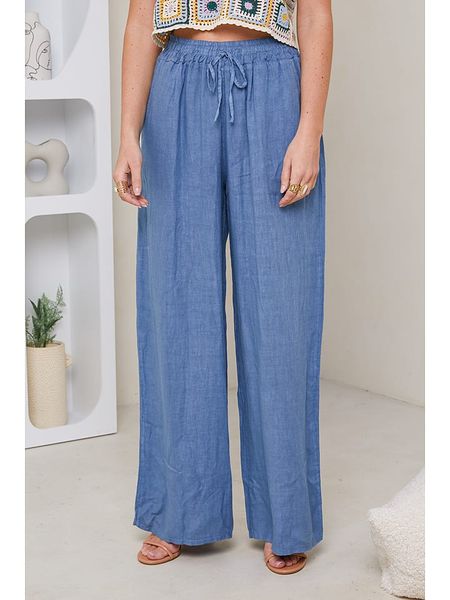 – czysty len- pas: ściągacz tunelowy- kieszenie: wpuszczane- krój: luźny- look: jednokolorowy