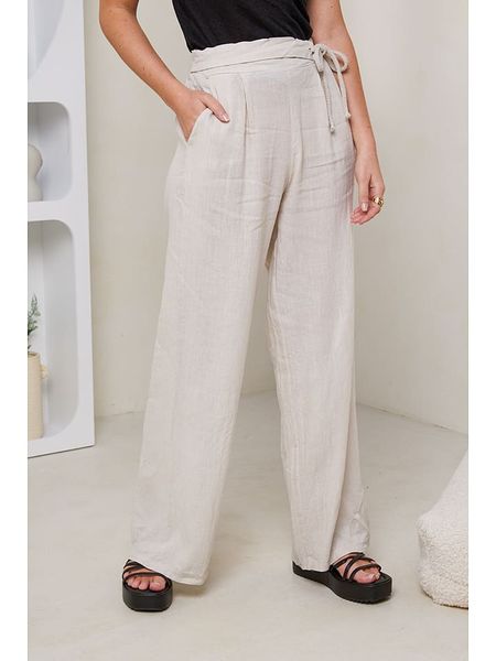 – czysty len- pas: ściągacz tunelowy- kieszenie: wpuszczane – krój: luźny – look: jednokolorowy