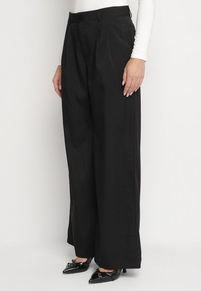 Czarne Spodnie Garniturowe z Wiskozą z Szerokimi Nogawkami i Wysokim Stanem Attenna