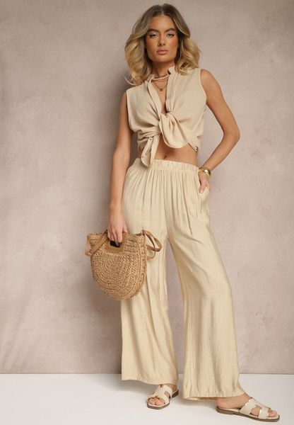 Beżowe Spodnie Palazzo o Szerokim Kroju High Waist Lislevia