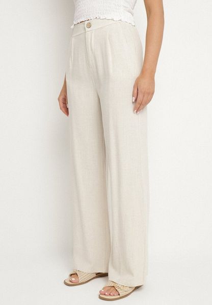 Jasnobeżowe Lniane Spodnie z Wiskozą o Szerokim Kroju z Gumką w Talii Zelzeri