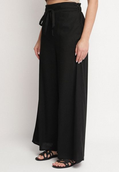 Czarne Szerokie Spodnie z Bawełny z Wysokim Stanem z Troczkiem Nelseli
