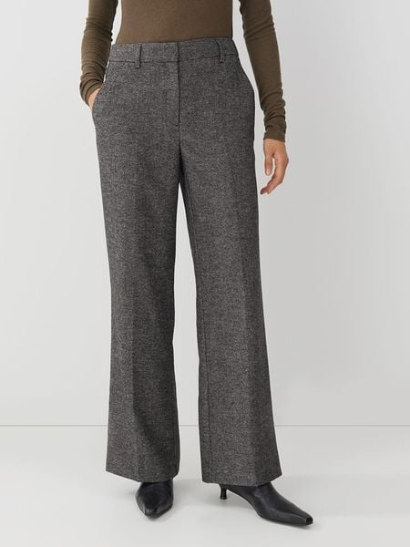 – z dodatkiem wełny- wysokość pasa: high waist- szlufki na pasek: tak- zapięcie: haczyk i suwak- kieszenie: wpuszczane- detale: kant- krój: luźny- wzór: melanżowy