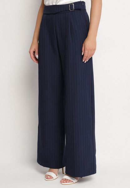 Granatowe Garniturowe Spodnie Szerokie z Wiskozą i Paskiem Ellifira