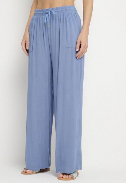 Niebieskie Spodnie Bawełniane Szerokie z Gumką w Pasie Efranica