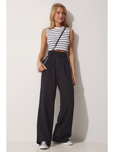 czarne spodnie materiałowe spodnie materiałowe z podwyższonym stanem spodnie materiałowe happiness istanbul spodnie materiałowe ze sklepu limango.pl odzież damska happiness istanbul odzież damska limango.pl